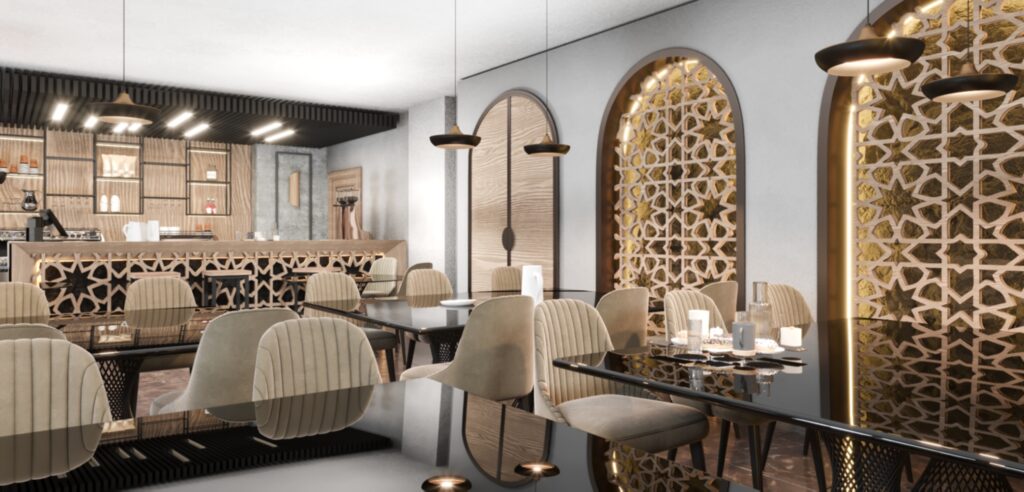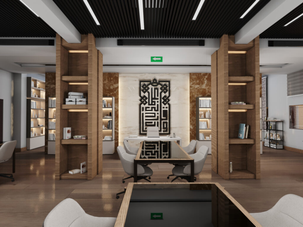 • A modern Islamic vibe for entrance and for the marble in the flooring with a beautiful Islamic pattern that ensure the Islamic vibes surrounds the place.